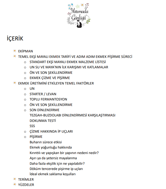 Bu kılavuzu hazırlamaktaki amacım, kendi öğrenme sürecimde en çok zorlandığım ve bir araya getirmeye çalışırken zaman, efor, umut ve güç kaybettiren tüm o dağınık bilgileri sizin için derleyip toparlamak; böylece gerçekten de adı gibi size yol gösteren ve zorlandığınız, takıldığınız o noktadan sizi çekip çıkarak bir rehber hazırlayabilmek oldu. Her süreç kendi içinde ufacık detaylar barındırıyor ve bu detayları göz ardı etmek bizi sadece geriye götürüyor. Biliyorum çünkü kimi zaman öylesi daha kolayıma geldiği için ben de bunu yaptım. Oysa ki tüm adımlarda gereken minik dokunuşlarla mükemmel kabarmış, içi baloncuklarla dolu, dokusu ve kıvamı yerinde ayrıca kocaman kulaklı o ekmeğe ulaşabiliriz. Bu nedenle tüm bilgileri dikkatlice değerlendirmenizi öneririm.