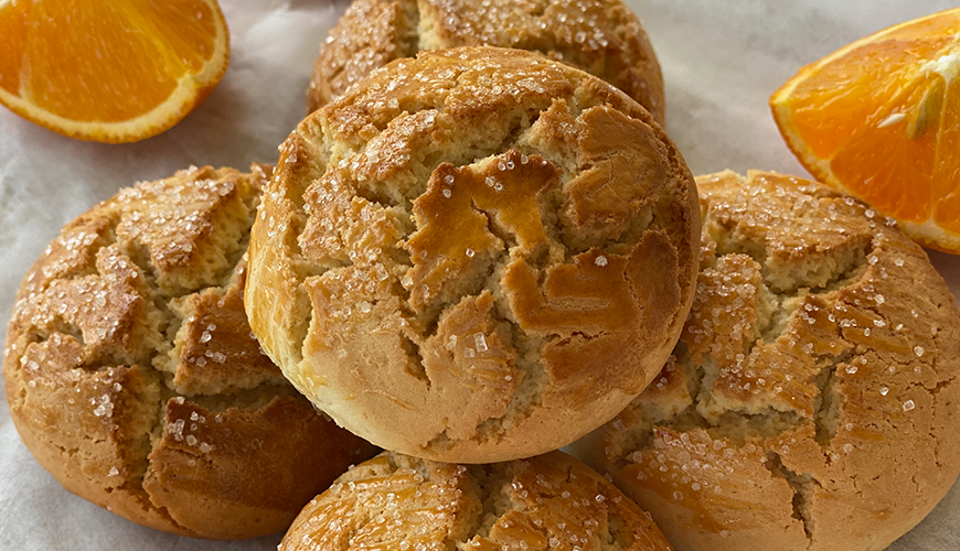Toz şeker, 2 yemek kaşığı portakal suyu ve portakal kabuğu rendesini mutfak robotuna alıp üç dört defa kısa süreli çalıştırıp karıştırın. Bu işlem, kurabiyenin portakal aromasını patlatacak!