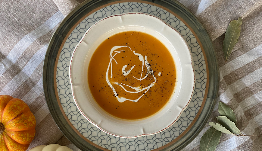 Kasedeki çorbanın üzerine 1 yemek kaşığı krema gezdirin ve adaçayı yapraklarını krema üzerine yerleştirin.