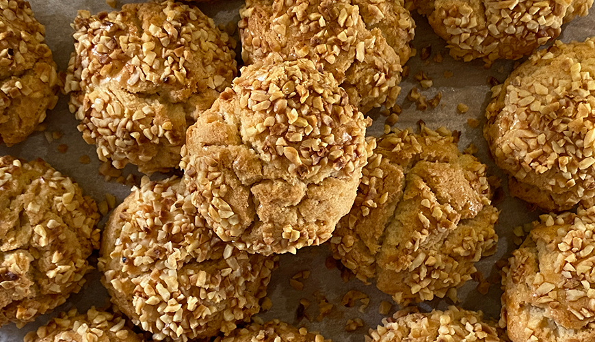 Son olarak kurabiyeleri önce hafif çırpılmış yumurta beyazına daha sonra fındık kırığına batırın.