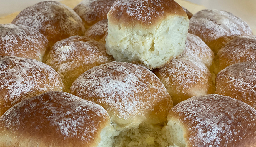 Üzerini kapatıp bir saat ya da hamur topları iki katına çıkana kadar mayalandırın. Mayalandığında hamur toplarının kenarları birbirine hafifçe dokunmalıdır.