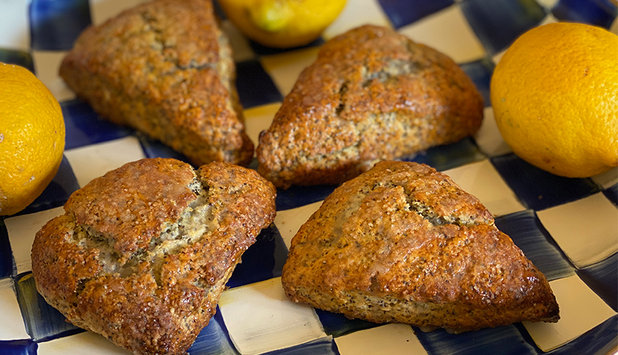 Büyük bir kapta un, tuz, karbonat, kabartma tozu, toz şeker, haşhaş tohumu ve limon kabuğu rendesini iyice karıştırın.