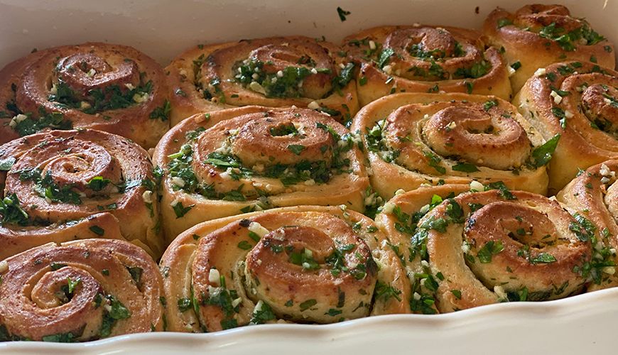 Kesilmiş ruloları, fırın tepsisine(yağlanmış) hafif aralık bırakarak çok bitiştirmeden yerleştirin (tepsi mayası olacak, fırında da biraz genişleyeceklerini düşünürsek çok tıkış tıkış bir görüntü olmasın ve iyi pişsin istiyoruz).