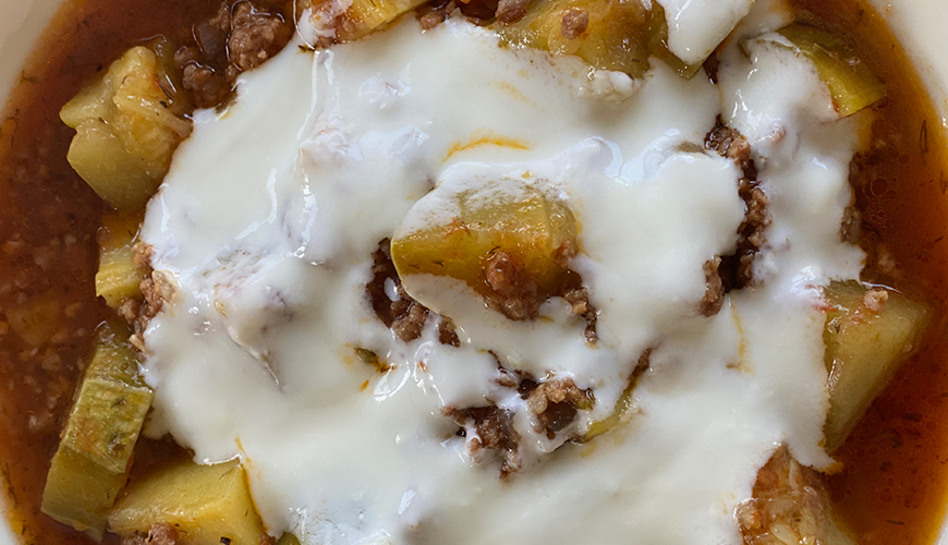 Yemeğimizin bazı olan kıymalı sos görsellerdeki gibi olunca kabakları eklemenin vakti gelmiştir.