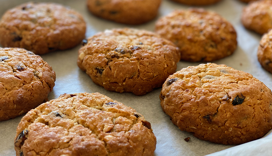175 derece, önceden ısıtılmış, alt-üst fan ayarlı fırında 15 ila 20 dakika arası veya üzeri altın sarısı renge dönene kadar pişirin. Dikkatiniz fırında olsun çok hızlı pişen bir kurabiye.