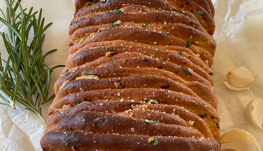 Pişen ekmeği, fırından çıkarın ve üzerine bir fırça yardımı ile eritilmiş tereyağı sürüp kalın çekilmiş deniz tuzu serpin.