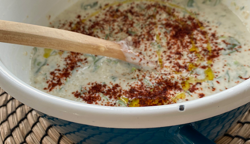 Yeşilliklerin ince kıyılmış olması lezzetlerinin yoğurda daha iyi karışmasını sağlıyor.