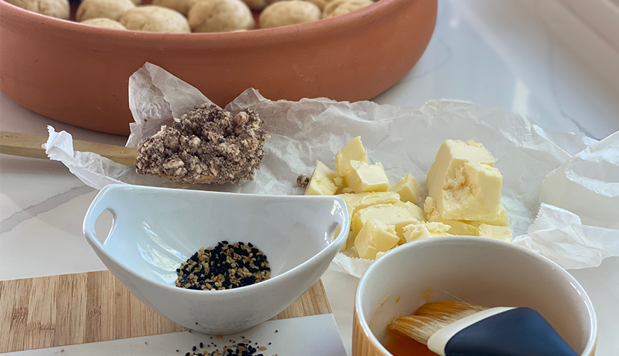 Fırın öncesi tüm poğaçaların üzerine 1-2 damla zeytinyağı ile karıştırılmış yumurta sarısı sürüp dilediğiniz tohumlarla tatlandırın.
