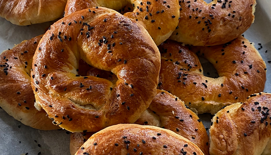 Tüm bezeler tamamlanınca ilk rulodan başlayarak; rulo hamurunu hafifçe çekerek uzatıp yuvarlak şeklini verin. Rulonun birleşen iki ucu hamurun alt kısmında kalacak şekilde birleştirin ve avucunuzun içiyle bu kısmı nazikçe yuvarlayarak daha iyi birleşmesini sağlayın (bkz.reels).