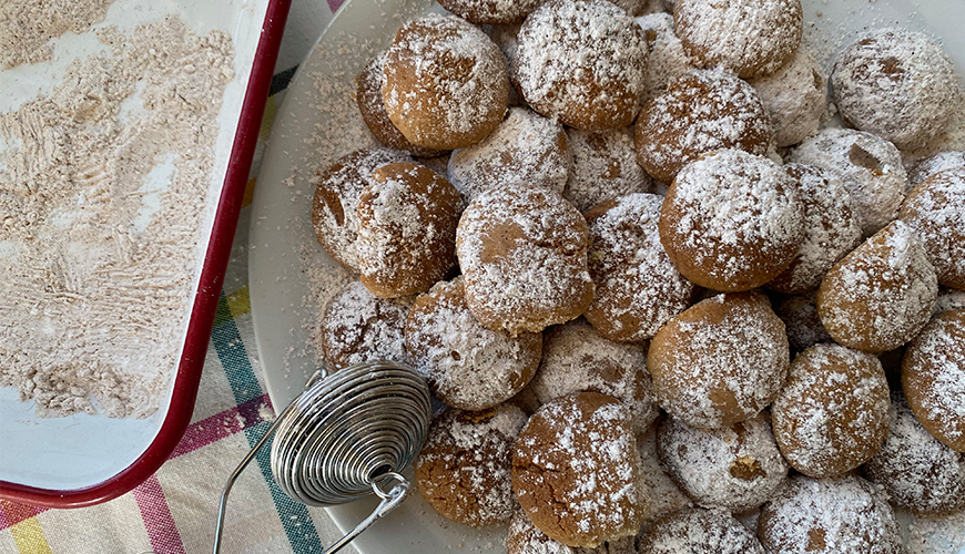 Üzeri için tarçın ve şekeri karıştırın ve fırından çıkan kurabiyeler ilk sıcağını atınca üzerlerine eleyin.