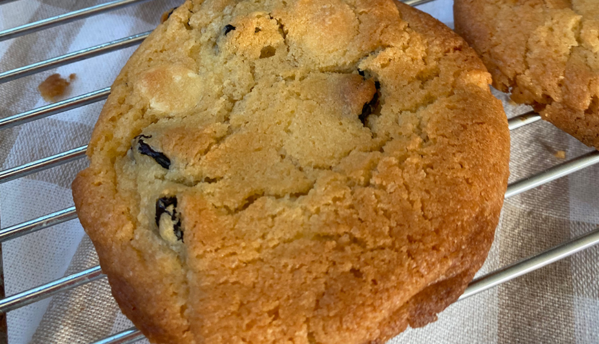 Son olarak beyaz çikolata parçaları ve kuru vişneleri ekleyip çırpın.