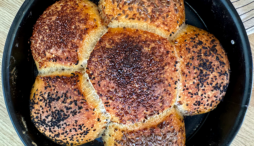 Süre sonunda ekmeklerin üzerine bir fırça ile su sürün ve çörek otu,susam,keten tohumu ile tatlandırın.