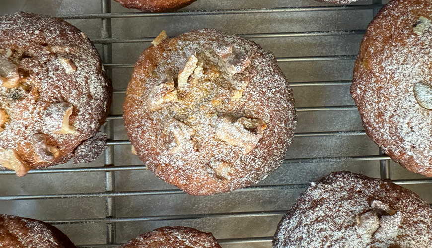 Bake in a preheated oven at 180˚C with fan, until the top is browned and the inside is cooked. Check the inside of the cake with a toothpick test before removing it from the oven.