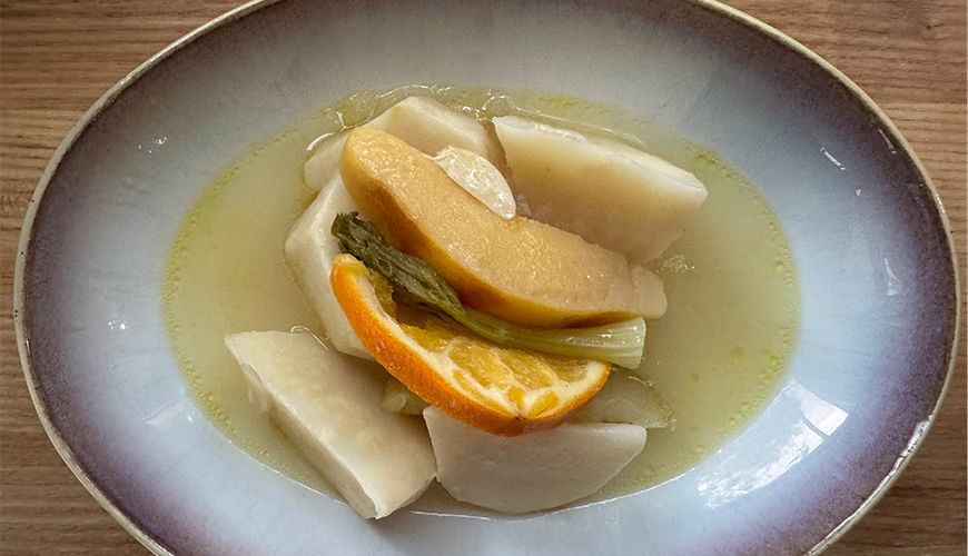 Peel the celery roots, cut them into apple slices, wash them and soak them in the flour water you prepared.
