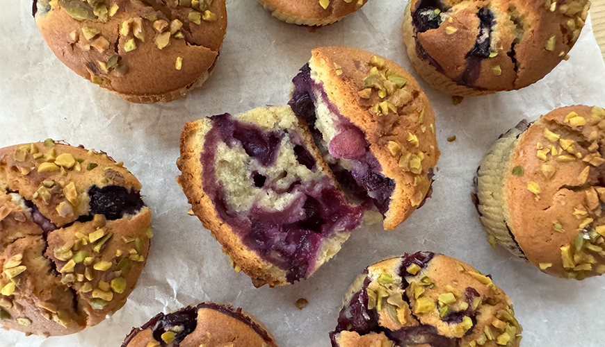 180°C 'ye önceden ısıtılmış fırında yaklaşık 25 dk, üstleri hafifçe altın rengi olana, ortasına batırılan bir kürdan temiz çıkana kadar pişirin.