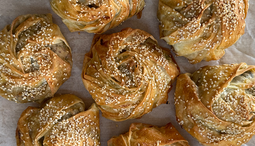 EGG BATH; 1 egg yolk + remaining yufka sauce, lightly beaten