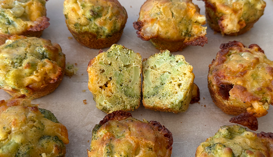 Karıştırma kâsesinde yumurtalar, zeytinyağı ve yoğurdu çırpın ardından nohut ununu ekleyip kıvamlı bir hamur elde edin, brokoli, peynirler, tuz ve karabiberi ekleyin, karıştırın.