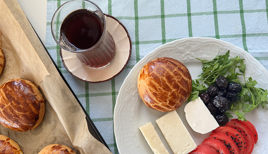 Lightly press the balls to flatten them. Brush the balls with egg yolk and, using a fork or a serrated pastry scraper, create the distinctive Karaköy poğaça pattern. Cover and let them rest on the counter for 40-60 minutes. Once the poğaças are fluffy and risen, they're ready to go in the oven.
