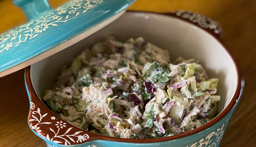 Diğer tüm malzemeleri küçük küçük doğrayıp tavukla birlikte bir karıştırma kabının içine alın.