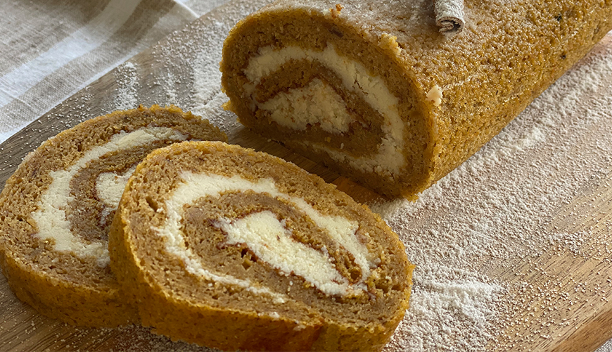 Keki bu defa dolgu malzemesi ile birlikte çok sıkmadan rulo haline getirin ve ek yeri aşağı bakacak şekilde servis tabağına yerleştirin. Temiz bir görünüm için uçlardan hafifçe kesin.